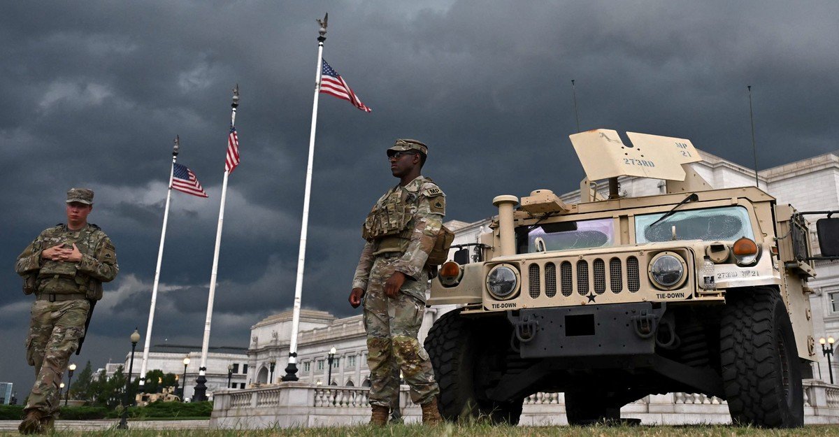D.C. residents are hardly unfamiliar or uncomfortable with men and women in uniform. Civilians ride the Metro with service members, work with them in federal offices, or serve them in restaurants. Several military facilities are located in the city, and the Pentagon is just over the Potomac in Virginia. Yet many people are rattled and upset by the takeover. To choose one rough metric, restaurant reservations are down significantly. If the idea was to make residents feel safe, it isn’t working. If the idea was to intimidate them, however, it might be.
