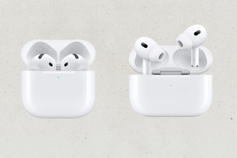 AirPods Pro 2: Better ANC and audio quality than the AirPods 4, plus touch controls. Up to 6 hour playtime and 30 hours battery life.