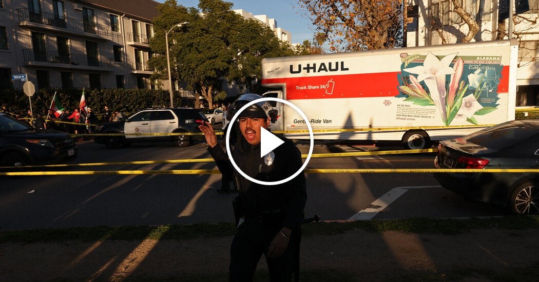 A U-Haul truck sped through a street packed with demonstrators in Los Angeles on Sunday as they marched in support of the anti-government protests in Iran. The truck hit one person, who was not significantly injured.