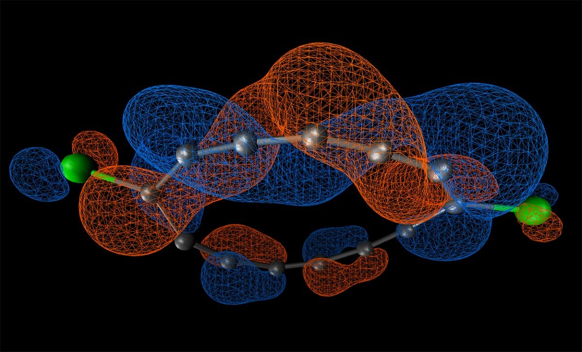 In the latest paper, the team created a loop of 13 carbon atoms, two of which, at opposite sides of the circle, are bound to a chlorine atom. This leaves 11 carbon atoms that link directly to their neighbouring carbons. They also each have two electrons whose orbitals are barbell-shaped and stick out, perpendicular to the loop.
