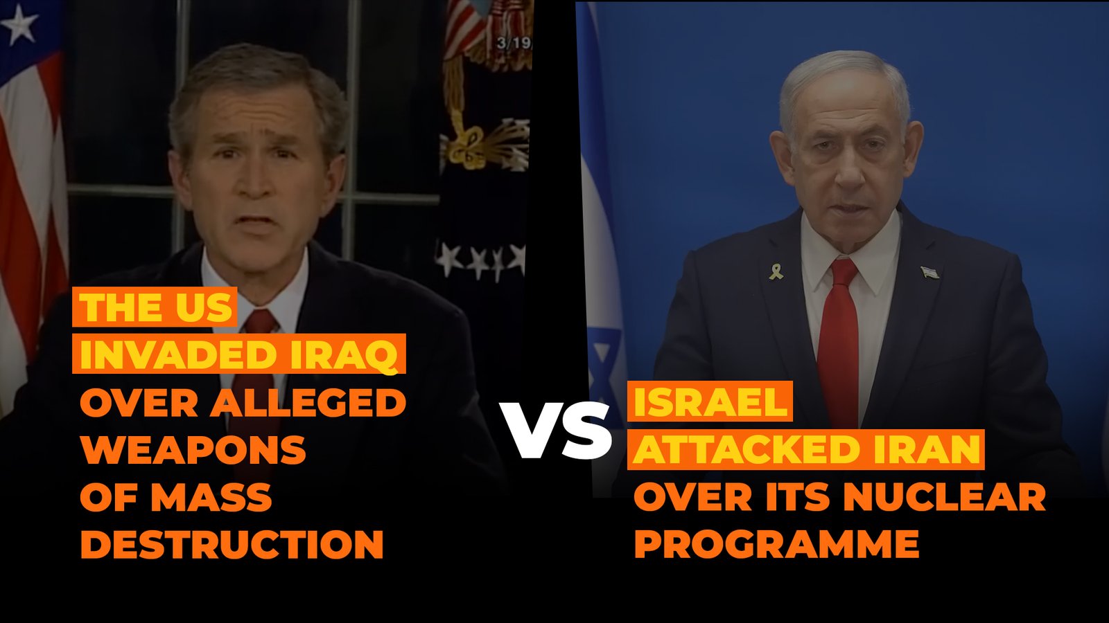We compare and contrast the 2003 US-led invasion of Iraq over alleged weapons of mass destruction with Israel’s military