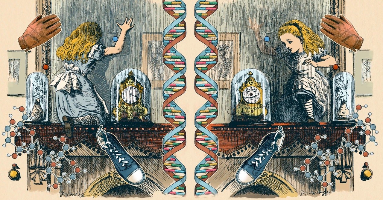 In looking-glass world, Alice finds all logic turned on its head: People run in order to stay in place, and they celebrate “un-birthdays” on all the days they weren’t born. Similarly, our universe differs from its mirror image. The weak force—the force that’s responsible for radioactive decay—is felt only by left-handed particles. This means that some particles will decay in the normal world while their counterparts in the mirror would not.